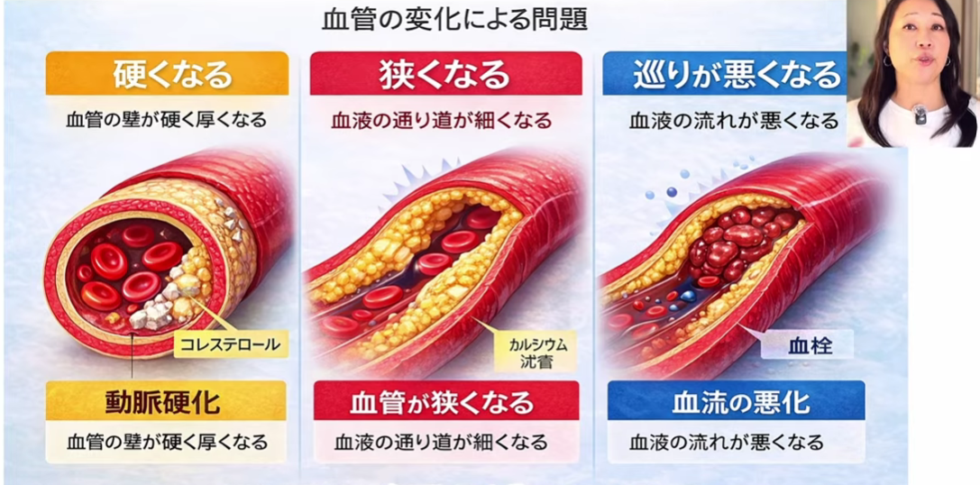 この血管が硬くなる・狭くなる・巡りが悪くなる…