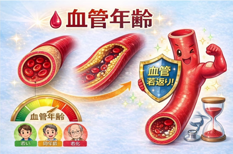 最近よく聞かれるようになった「血管年齢」とは、血管の老化度。